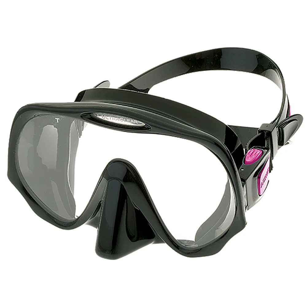 The UltraClear Atomic Aquatics Frameless Mask is an experience in comfort and fit complimented by a wider, clearer view. What makes the UltraClear tempered glass lens great? Their new technology eliminates the slight green tint caused by iron impurities left in the tempered glass during production. This gives you exceptional clarity, minimizes distortion, and maximizes light transmission. With the close fitting silicone skirt and adjustable strap, this mask provides a comfortable fit and good seal. Being a single lens, frameless construction, you get a wider range of view and a low volume mask that sports hydrodynamic styling. All this comes together to create a better experience for you.