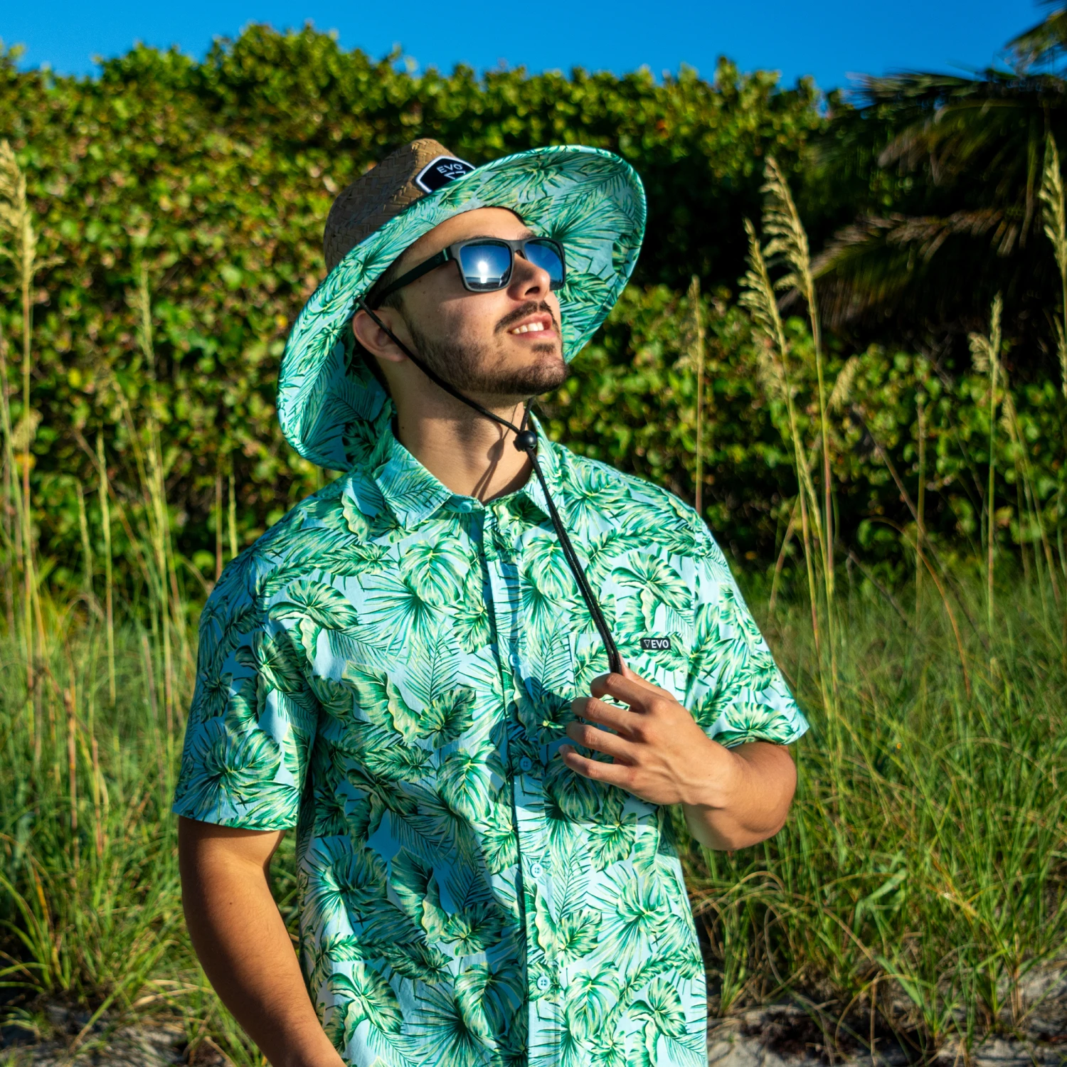 Show off your adventurous side with the stylish and comfortable EVO Hana Short Sleeve Button Down Shirt. You will stand out with the eye-catching tropical print as well as appreciate the soft feel of this classy shirt. The 4-way stretch allows you to move freely and feel unrestricted. The convenient left chest pocket makes for quick and easy storage. Feel like the king of the jungle with the EVO Hana Short Sleeve Button Down Shirt.