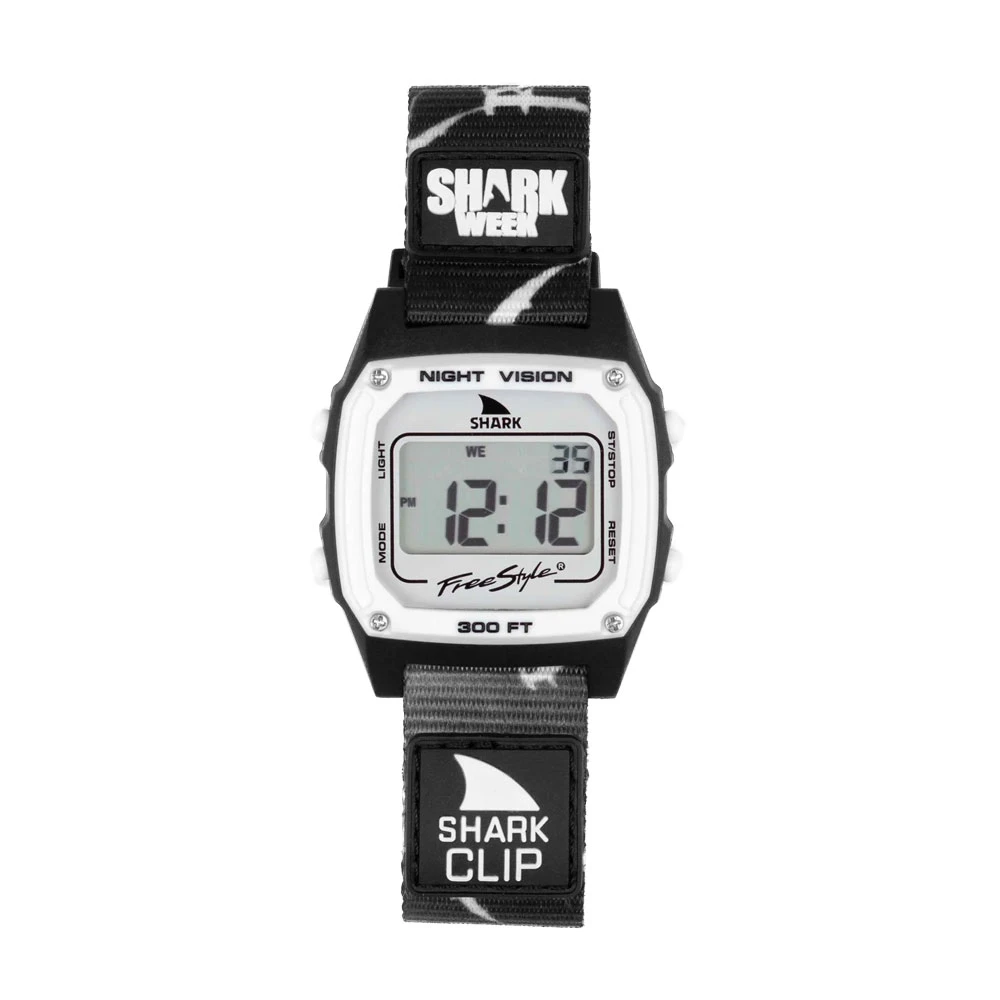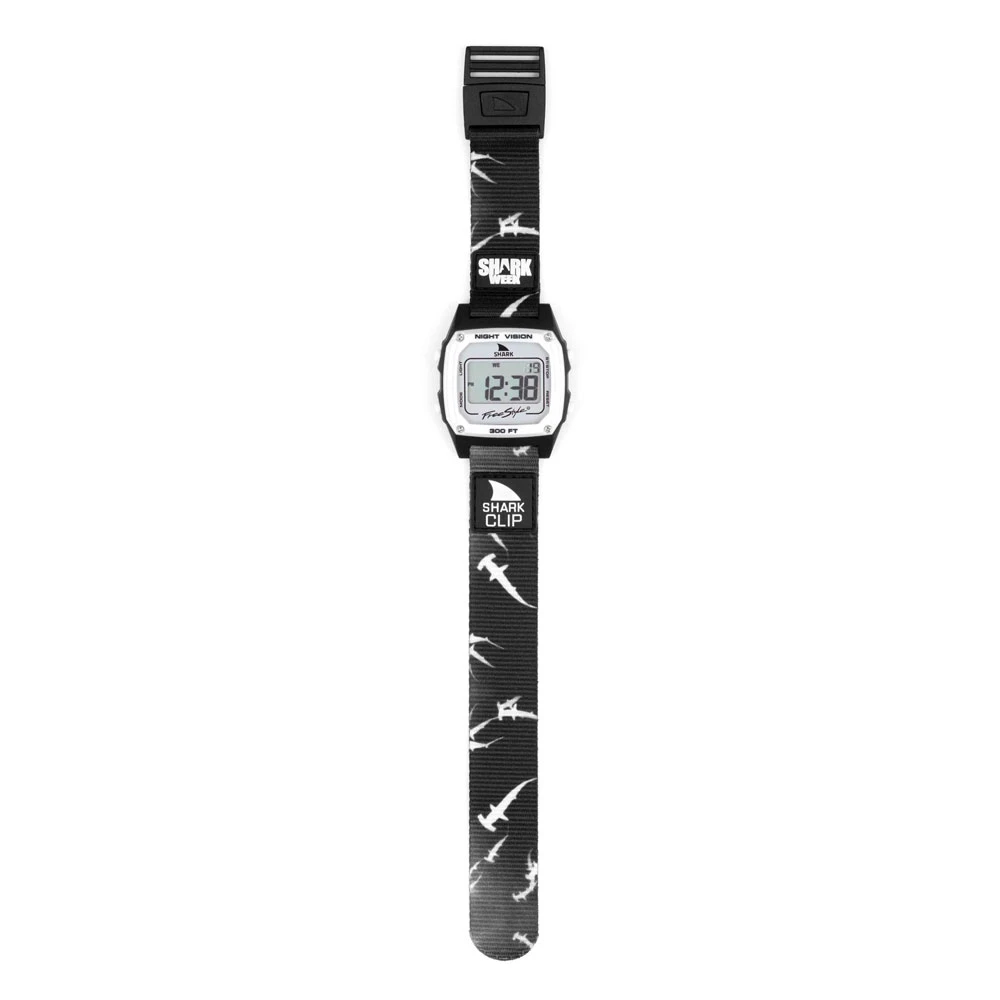 The Freestyle Shark Classic Clip Watch has merged with Shark Week to create this amazing Mega Hammerhead design. This limited edition hammerhead watch brings the cool, unique grace of your favorite shark to your watchband. This watch can bring a sense of adventure to your more mundane days on land, and it can amp up your actual adventures out at sea. With a water resistant depth rating of nearly 330ft, it can go with you on deeper excursions while you watch your favorite animal in its natural habitat—the hammerhead shark. Night diving? The night vision feature will illuminate the watch so you can stay up to date on time. So, dive into better style and punctuality with the Freestyle Shark Classic Clip Watch in the Shark Week Mega Hammerhead design.