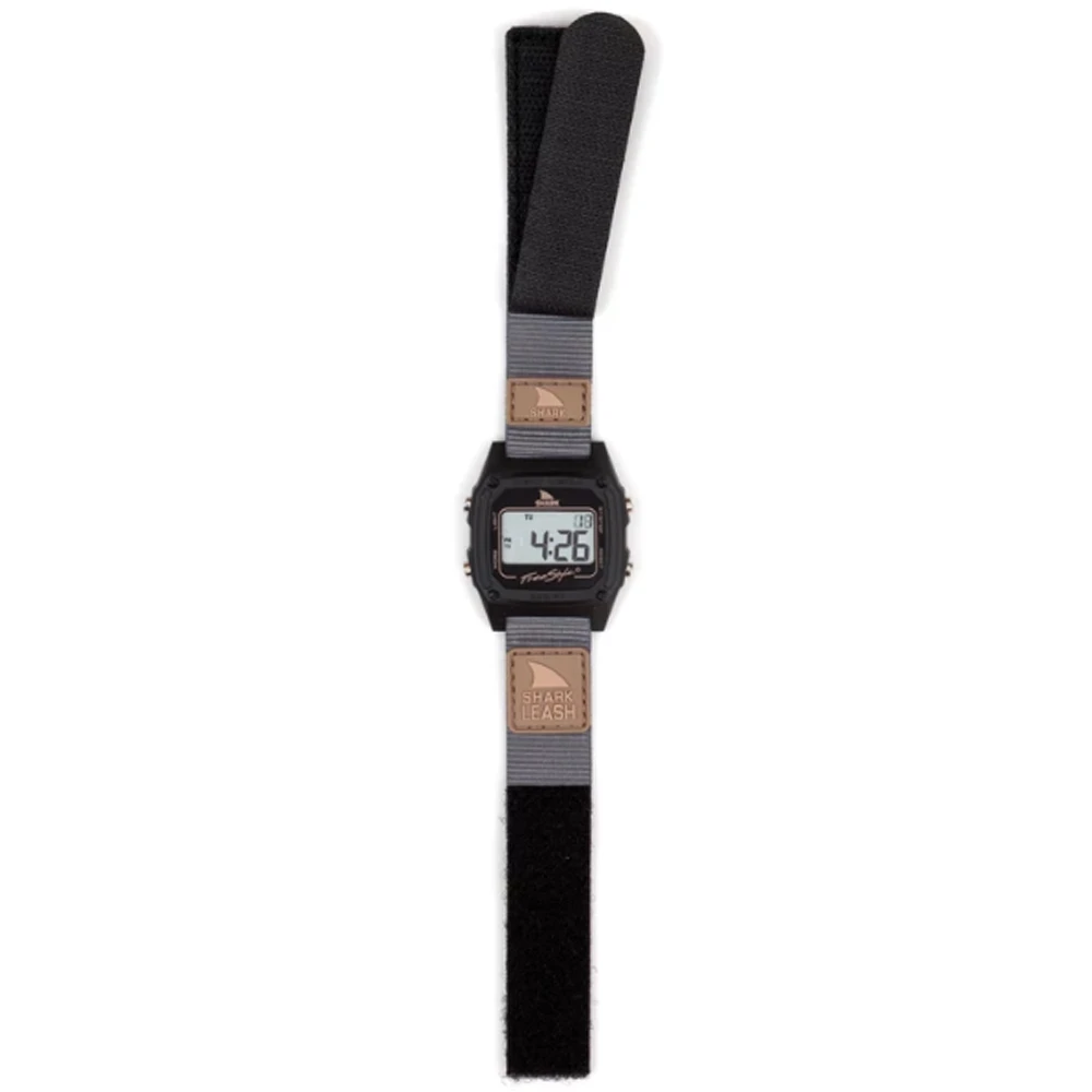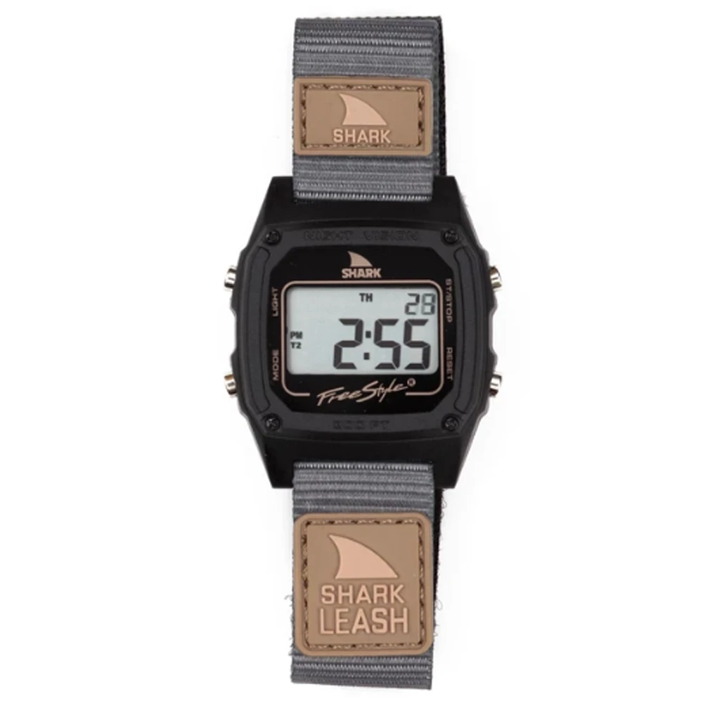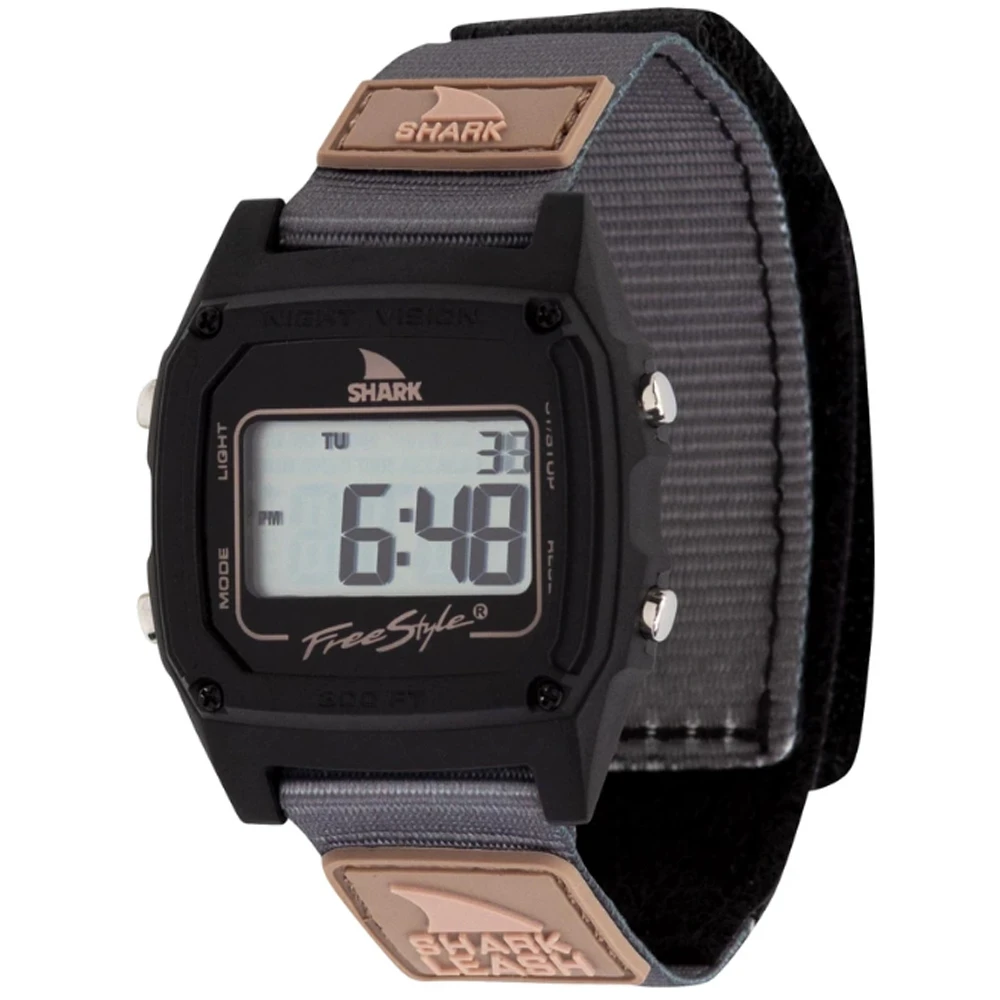 Here we have a sleek and professional style with the Sahara design for the Freestyle Shark Classic Leash Watch. The classic velcro leash closure that started Freestyle Watches is seen here in black and grey with a tasteful splash of brown. This may be a great watch if you’re catching the morning surf before going into the office or if you just want a watch that will go with absolutely everything. Take it with you snorkeling, diving, or freediving up to 300 feet, and feel free to press any buttons on the watch while you’re underwater since the Hydro Pushers protect from water damage. With tons more features like Night Vision, an alarm, and a stopwatch, you can bet you’ll love this timeless time piece.