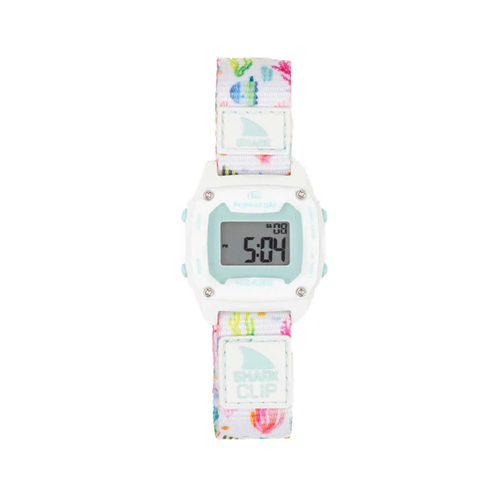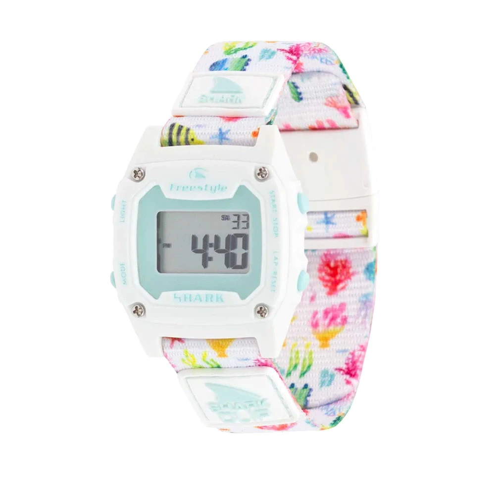 The Freestyle Shark Mini Clip Watch is for those with tiny wrists on big adventures. The Reef Life design on the durable nylon band is bright and fun, and the classic clip closure is easy and secure. The multitude of features like Night Vision, a stopwatch, alarm, and countdown timer are just a few things that make this watch amazing. With a love for the sea, as seen by the colorful coral around the band, you’ll appreciate that this watch has the ability to remain water-resistant up to 330 feet and that the Hydro Pushers let you use the buttons on the watch without the worry of damage. Dive in with the Freestyle Shark Mini Clip Watch in the vibrant Reef Life design.