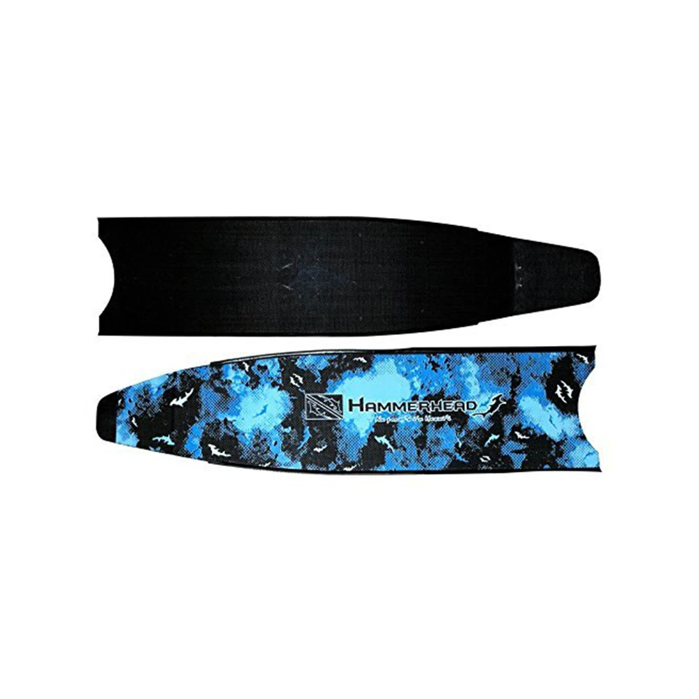 Conserve energy and exert control when you use the HammerHead Kaudal Carbon Fiber Fin Blades (Blue Camo). Every kick counts as the 20° angle blades provide an efficient power transfer. The half-inch raised water channeling rails to reduce wobbling and provide good directional thrust. The carbon fiber construction makes these blades both lightweight and durable.