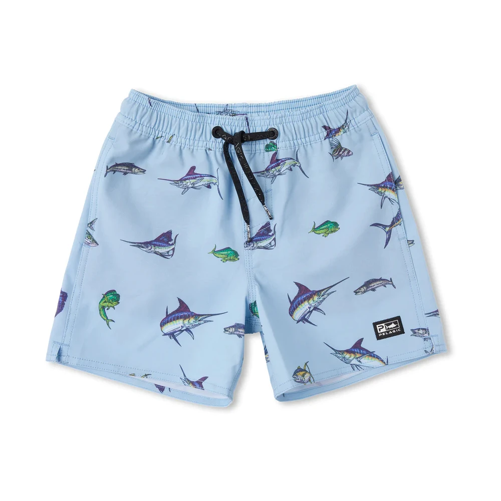 The Pelagic Dockside Elastic Waist Boardshorts are comfortable and flexible shorts that can be worn for all occasions. Whether on the beach making sand castles or poolside eating chicken nuggets, your toddler will love the soft hand feel of these shorts. The elastic waistband will keep the shorts secure at the waist and the Repreve® recycled fibers will repel water and stains, allowing your little one to focus on what’s important, having fun.