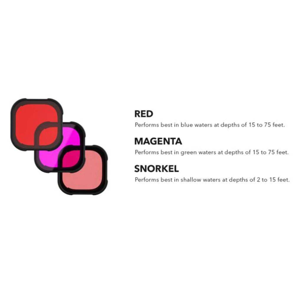 Pick up the Polar Pro DiveMaster Collection for HERO9® Protective Housing and you’ll be ready to capture the perfect images in blue, green, and shallow waters. This 3-pack lens filter kit includes a protective carry case, a red, magenta, and snorkel filter. You can take all the filters along on every dive and quickly, easily attach the correct one for where you are at the time. With the unique slide on design and tethers, it’s never been easier to change out your filters without losing them.