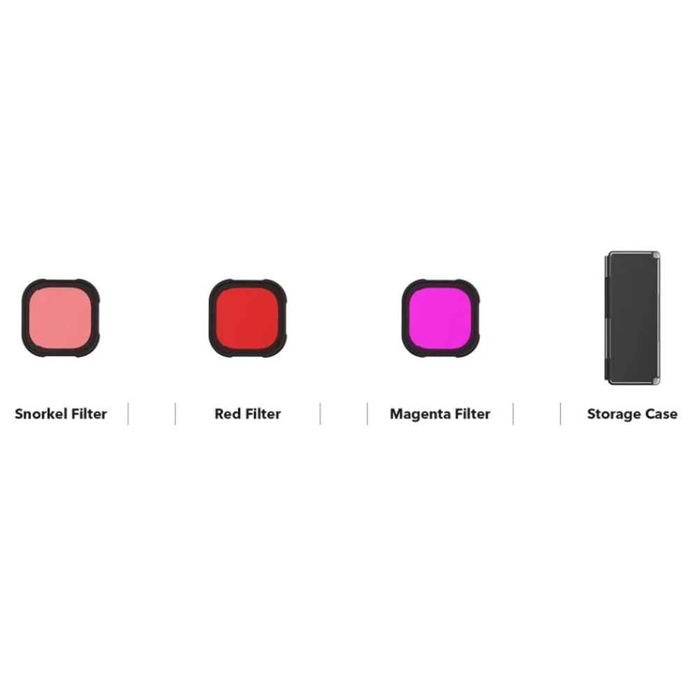 Includes Red, Magenta, and Snorkel filters, and a custom storage case