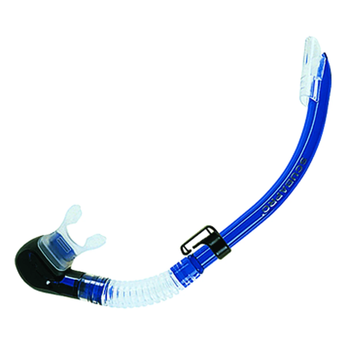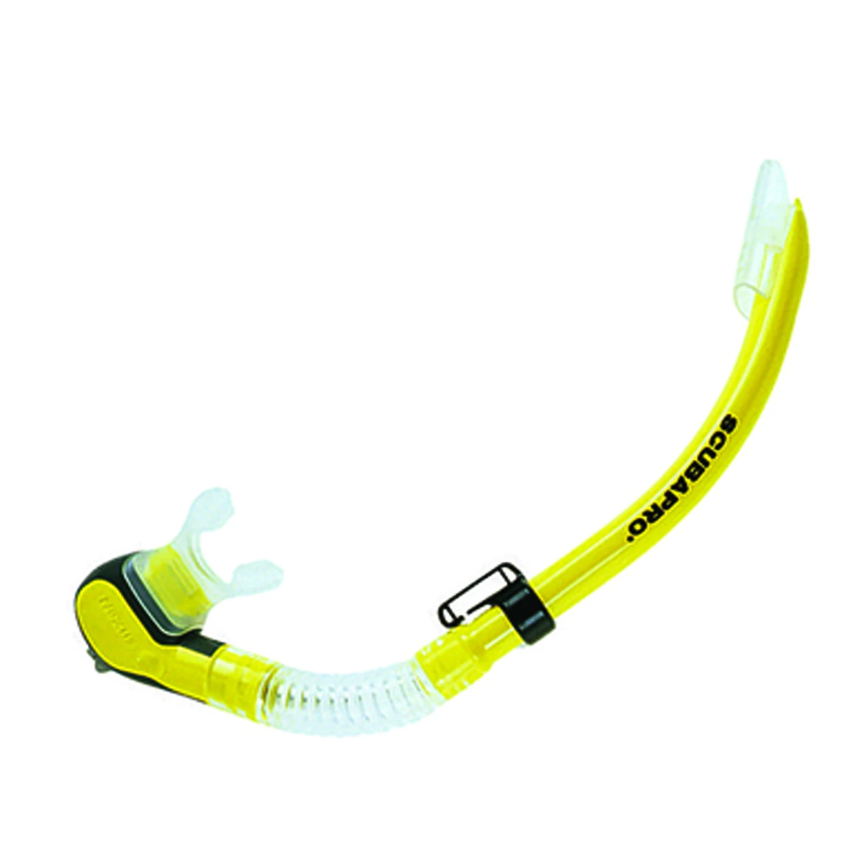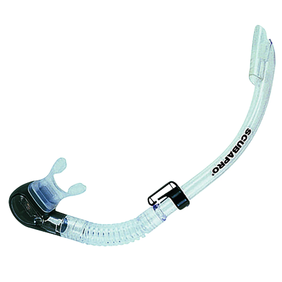 The ScubaPro Nexus Semi-Dry snorkel releases bubbles away from your face, keeps water out, and allows for good airflow. This gives you a better snorkeling experience. Its rotating ergonomic mouthpiece also makes long sessions comfortable. When not in use, this device hangs away from your face, so it’s easier to use your regulator. A quick-connect clip saves you time when taking the snorkel on and off your mask strap.