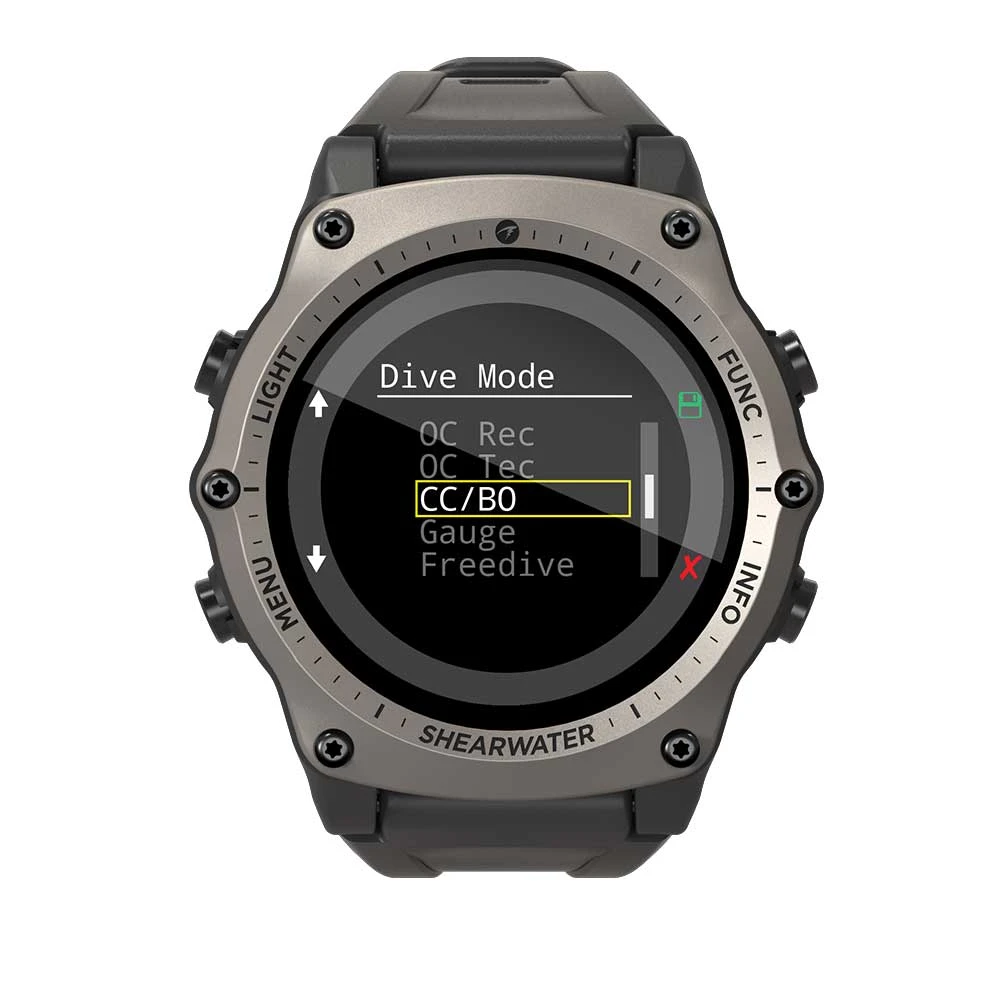 Modes: OC Rec, OC Tec, CC/BO, Gauge, and Freediving