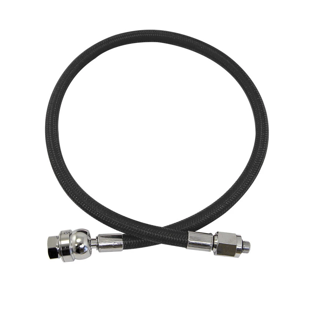The XS Scuba MiFlex Dual Swivel Low Pressure Hose provides flexibility and comfort along with the trusted construction of MiFlex. The male swivel on the first stage end prevents twisting by swiveling 360 degrees. A swivel ball joint on the female second stage end has a 60-degree range of motion, helping reduce pushing and pulling on your mouthpiece. It is approved for use with up to 40% oxygen. MiFlex constructions ensure higher performance and longer life than traditional rubber regulator hoses.